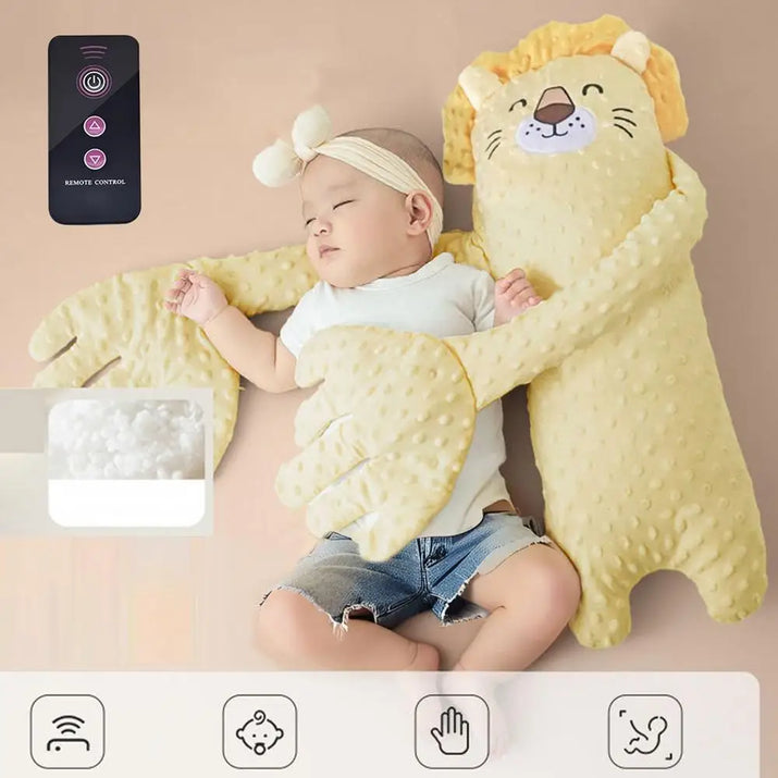 Answer 1: This plush bear features a gentle automatic tapping mechanism that mimics the comforting rhythm of a heartbeat, promoting relaxation and calming anxiety for your baby. Its soft, cuddly design creates a sense of security, ensuring your little one feels safe as they drift off to sleep.